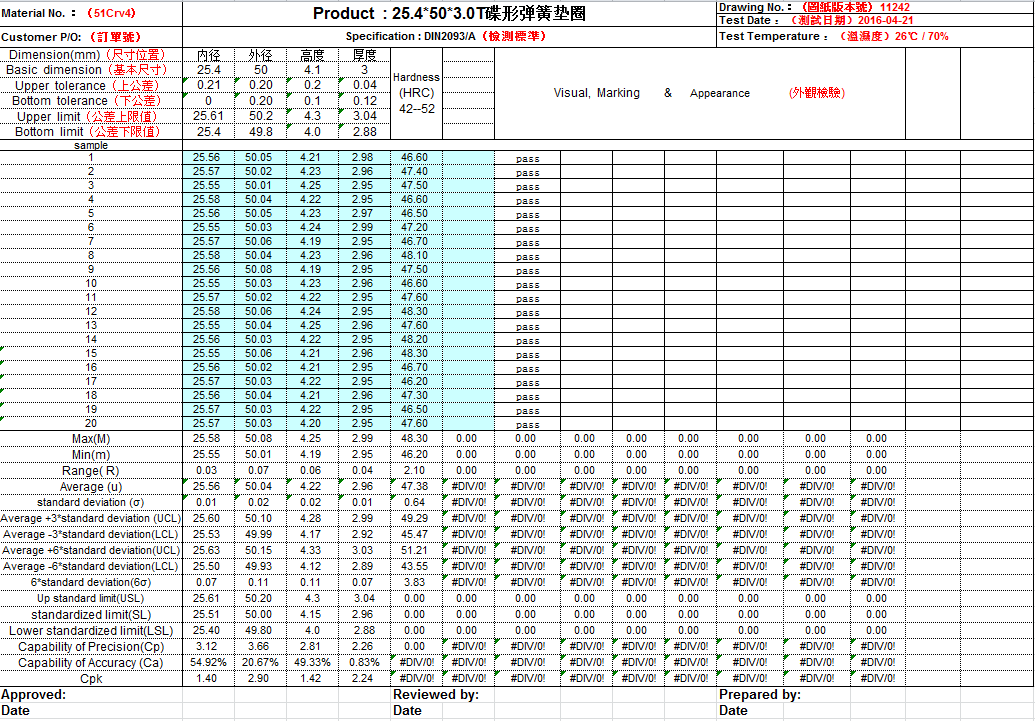 平!CPK质量统计分析能直接反映质量的状态!对于大批量的汽车紧固件质量控制更加适用,史特牢紧扣系统防松垫圈长期